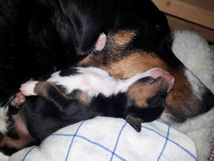 In der Hitze dieser Nacht muss Danjo einen echten Volltreffer gelandet haben. Nach 62 Tagen, am 01.10.2018, zwischen 13:30 und 20:15 Uhr brachte Asti, sage uns schreibe, 10 kleine Appenzeller an's Licht dieser Welt. Acht Mädels und zwei Jungs. Allesamt bildschön gezeichnet und mit einem riesen Appetit gesegnet. Unsere "Asti von der Niederzeller Höhe" ist also nun selbst stolze Mama! ...und machte Fanny auf einen Schlag zur 10-fachen Oma!